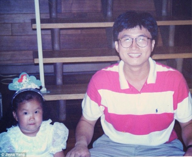 小时候的金娜和爸爸。金娜的爸爸17岁时移民美国,为了生计,他曾辛苦地打过零工、做过些小生意。金娜说,爸爸曾经经营一家干洗店,一周工作六天,每天12个小时。