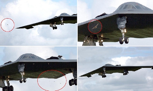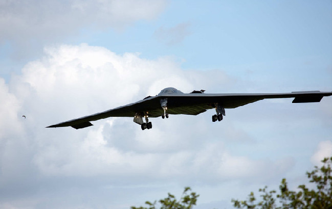 驻英美军B-2隐形战略轰炸机着陆时撞到老鹰
