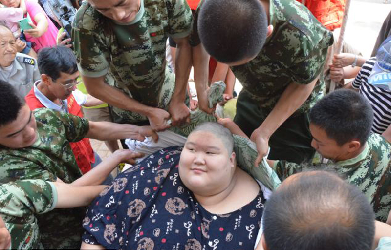 辽宁沈阳一男子重达495斤,由于身体太重这名男子从17岁开始没有离开过他的家。这次9名消防员用厚床单把将着名男子抬下楼,这是他3年来首次下楼。(单芳 人民网)