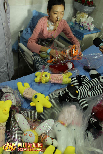 26岁的内江女孩周洁,因为癌症晚期,两年内做了20次化疗,花掉近30万元治疗费,情况一天天恶化,家里花光了所有积蓄,但她不愿无偿接受好心人捐款。为了补贴医用减轻家庭负担,于是她开始在病房内学做布偶,并开起了淘宝店,售卖自己的手工艺品筹措医疗费,人们亲切地将她叫作“布偶女孩”。
