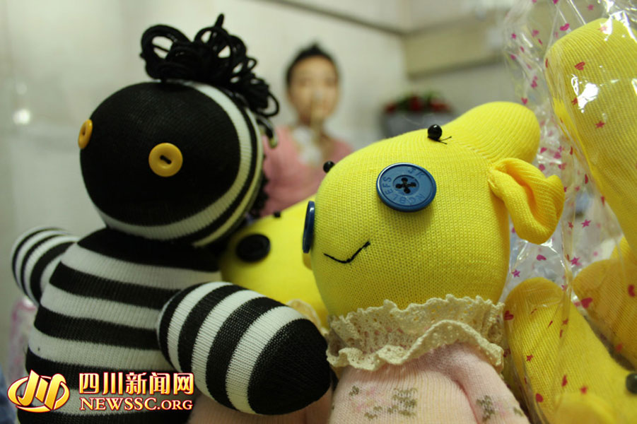 积蓄花光了,可治疗还得继续,“不然一出院只有等死。”周洁说。好心人们向她伸出援助之手,可是对于动辄一次就上万的治疗费,捐款只是杯水车薪。半年前,周洁突发奇想,开始自己动手制作布偶,并开了淘宝店,在医院边治疗边制作布偶售卖,用于补贴医用。 “以前一天能做5个布偶,现在做完一个就需要3个小时。”周洁说,病情一天天恶化,手脚动作也明显变慢了,妈妈也帮衬着自己“做工”,平时,她就在病床上用手机管理自己的淘宝店,发货的事也只有让妈妈和老公去做。周洁已经有了最坏的打算,为了能尽力帮着家里减压,她渴望能多卖点布偶,挣回一点零星钱,于是将自己的淘宝店取名为“布偶女孩”。周洁说:“刚开始时,一天能接到好几单生意,一个月能挣到2000来块钱。”到现在,周洁一共卖出了800多个布偶。可是最近生意不怎么好了,要时隔几天才有顾客,她不知道该怎么办了。