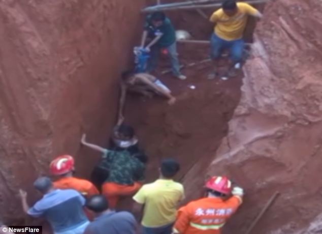 由于坑道土质紧实,给救援工作带来了很大的难题,指挥员身先士卒,带领官兵们用手刨、用铲锹,尝试各种方法加快进度,经过两个多小时的战斗,终于在20:16将被埋工人救出,并被官兵和群众们共同托举着送上救护车,伤员现在正在医院接受治疗。