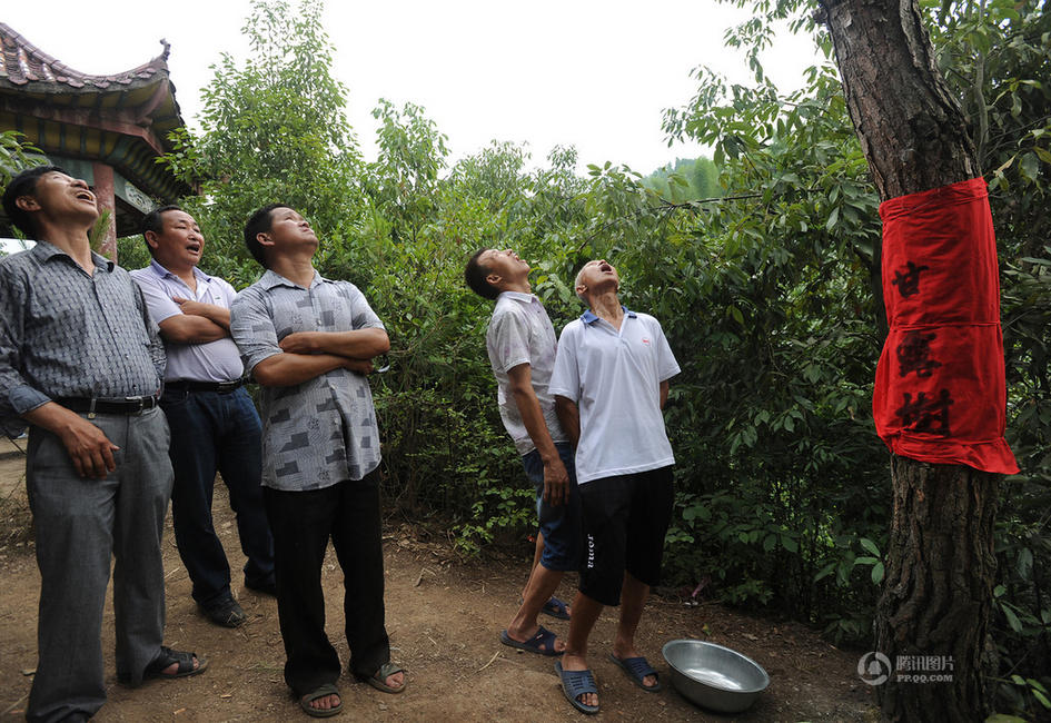 2014年6月23日,10多天来,位于湖北省通山县洪港镇东坪村和江西省武宁县大洞乡彭坪村交界处的慈航寺周边,4棵针叶马尾松大晴天里不停地往下滴水,就像下雨一样。这一奇特景观引起周边村民的极大兴趣,最近几天,每天约有千余人前往看稀奇。