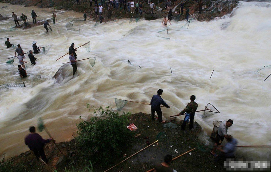 浙江衢州水库开闸泄洪 村民冒险捕鱼