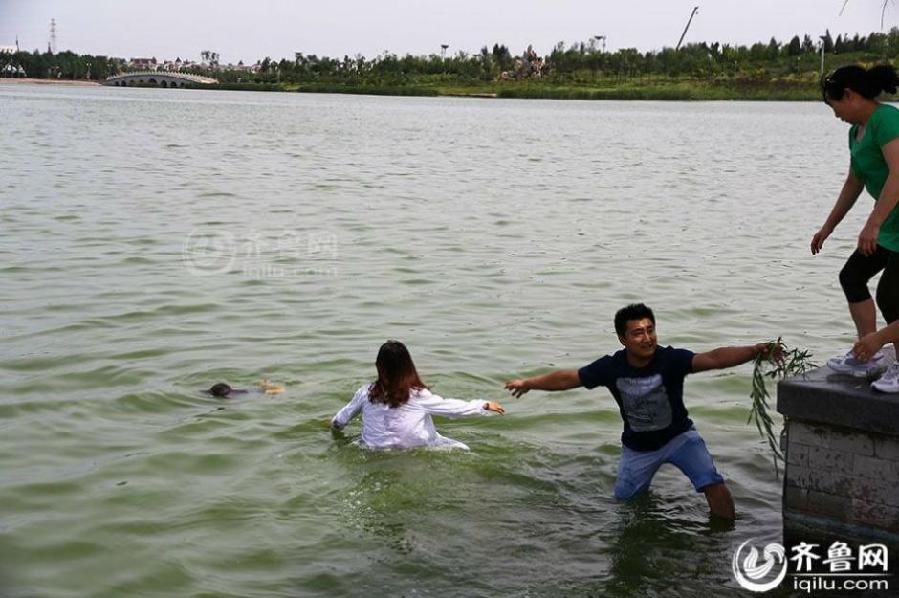 东营齐鲁网6月25日讯(东营台左振平、赵志娟、刘阳)6月24日下午,有市民在东营清风湖目击了惊险一幕,一个大约二十岁左右的女孩不慎跌落清风湖,另一位同样二十岁左右的女孩儿奋不顾身跳下湖,把落水的女孩救了上来,但是在救完人以后,救人的女孩没有留下任何信息就走了。