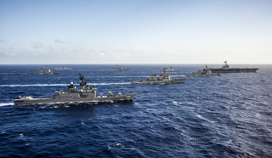 据美国海军网报道,7月30日,美国、印度、日本三国联合舰队在冲绳东部海域举行舰队武力秀活动。7月24日至30日,三国海军在中国东海方向开始举行代号“马拉巴尔2014”联合军演。