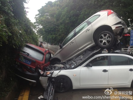 深圳新闻网讯 据@深圳交警官方微博消息,8月4日13时50分左右!泥岗西路转市二医院路段6车相撞!目前有2人在医院检查!事故中,5辆为小车!最后一部车为大货车!据现场民警了解,大货车司机称:刹车失灵!
