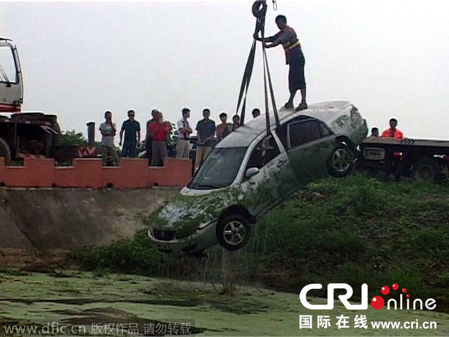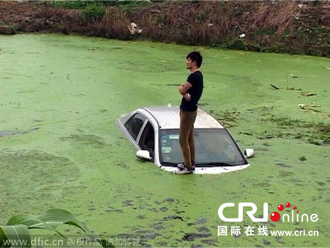 2014年8月10日下午2点,一名轿车司机开车途经南京六合区葛新路拐弯时,不知是什么原因,轿车突然失控,一头冲到路旁的河里。就在轿车往下沉的时候,车内司机情急中赶忙打开车窗玻璃爬了出来,并站在车头引擎盖上报警求救。六合交巡警大队接到报警后,立即赶到现场施救,由于轿车漂浮在河中央,离岸边10多米远,小型施救车辆用不上,交警立即又联系了一辆大吊车赶来支援,终于将轿车吊上岸。