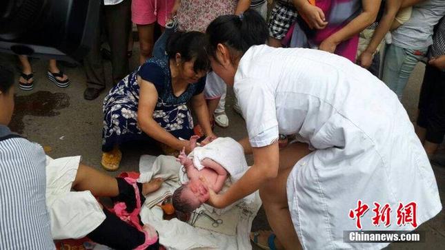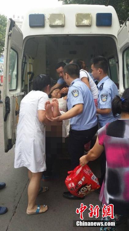 图为 2014年8月11日,浙江衢州,急救车赶到时,孩子已经生出来了。 图片来源:CFP视觉中国