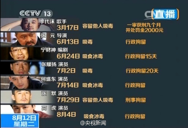 记者了解到,今年,已陆续有李代沫、张耀扬、张元、宁财神、张默、何盛东、高虎等多名演艺界人员因吸毒被抓。受国际毒潮持续泛滥和国内消极因素影响,北京进入毒品加速蔓延期,截至今年5月底,北京市登记在册吸毒人员已达2.6万余名,且仍以年均11.9%的速度快速增长。(文字来源:京华时报)