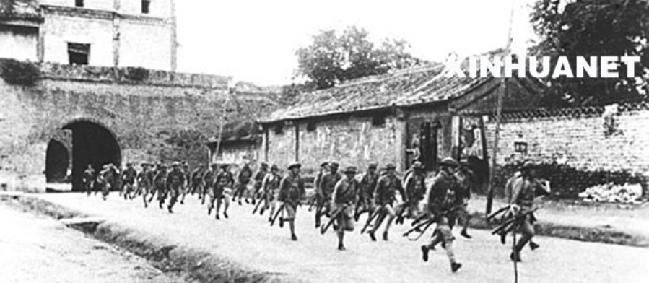 驻守北平宛平城的中国军队奔赴卢沟桥抵抗日军。