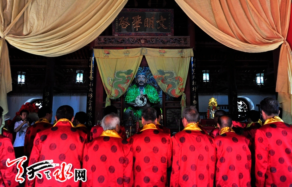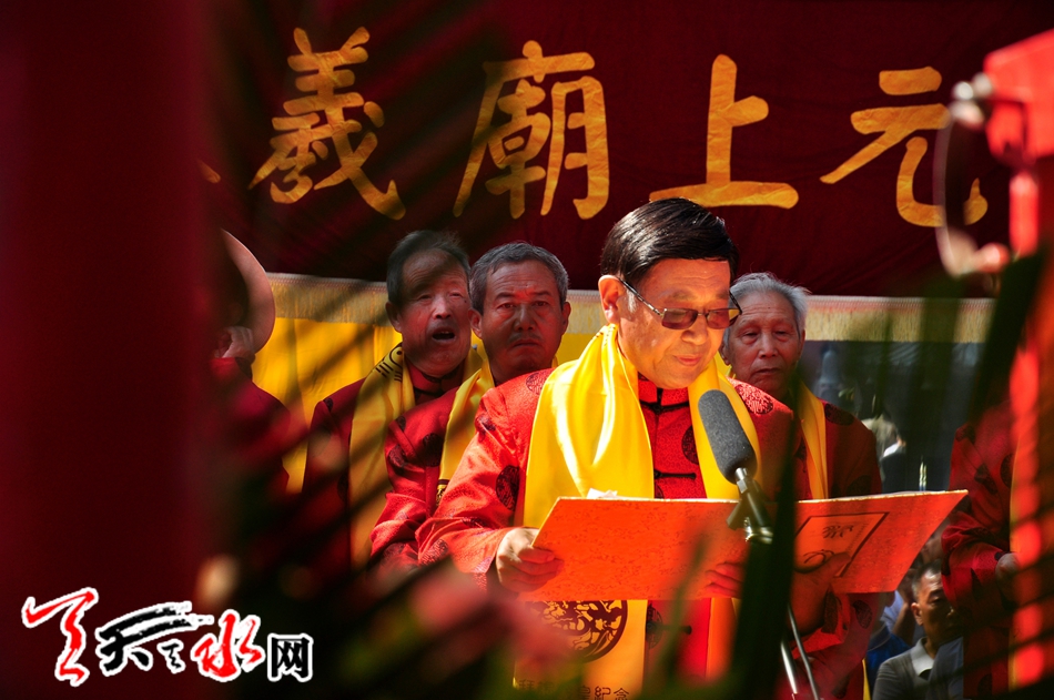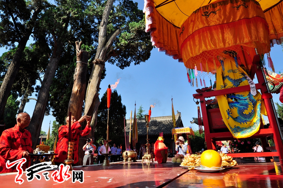 天天天水网讯 记者何永德 农历七月十九(8月14日)上午9:50分,备受天水人民关注的甲午(2014)年秋祭中华人文始祖太昊伏羲典礼在伏羲庙隆重举行。来自社会各界人士及数千名群众参加了祭祀典礼。