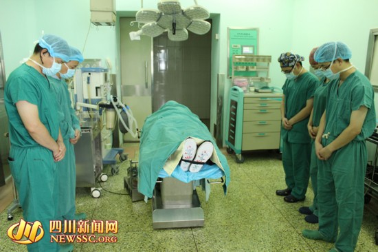 器官摘取结束,医生在手术室举行了遗体告别仪式