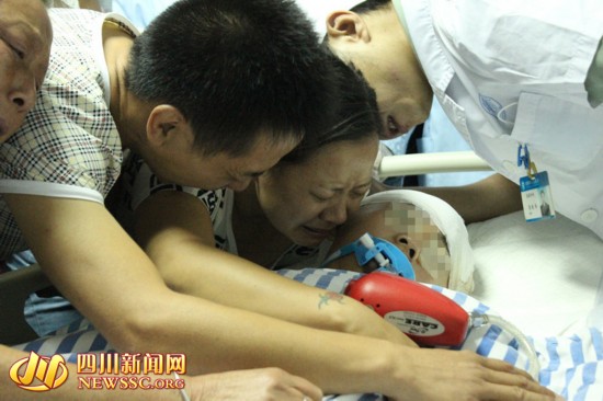 医生即将为小扬开展器官摘取手术,孙女士和赖先生抱儿痛哭与之告别