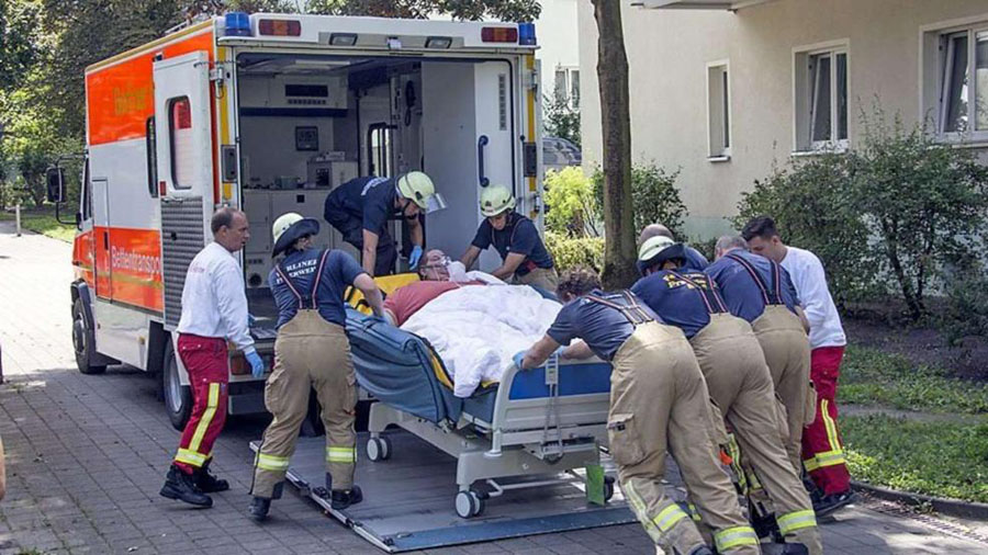 德国325公斤胖女人被叉车抬出屋子送医院。