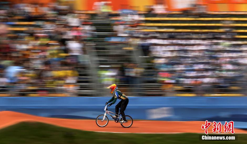 8月19日,在南京青奥体育公园小轮车比赛场地举行的第二届夏季青年奥林匹克运动会小轮车比赛排位赛中,32名来自世界各地的参赛运动员在高低错落的赛道上飞驰,展现极限运动比赛的魅力。小轮车运动源于70年代的美国,2008年北京奥运会小轮车成为了奥运会正式比赛项目。中新社发 泱波 摄