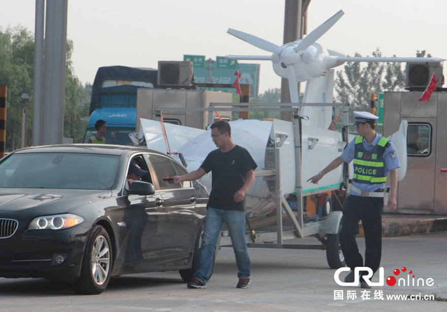 据驾驶员介绍,他是上海一公司的老板,自己非常爱好飞行,并出资研制了一个小型飞机。在六安试飞之后,他准备将飞机拉回上海,进行下一步改造。因担心走国道不安全,这位车主就想起了闯卡走高速的办法。