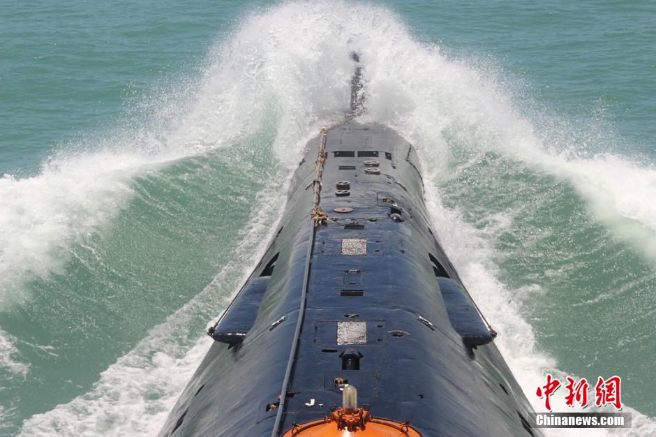 8月中旬,中国海军南海舰队某潜艇支队在南海某海域进行海上训练。该支队官兵立足现有装备,全程采取“背靠背”的对抗方式,坚持在各种复杂气象海况下临机组织训练,先后圆满完成了打击敌水面编队、护航警戒、潜伏待机、艇机协同、夜间突击等科目的训练。图为某型潜艇高速向目标海域航行。