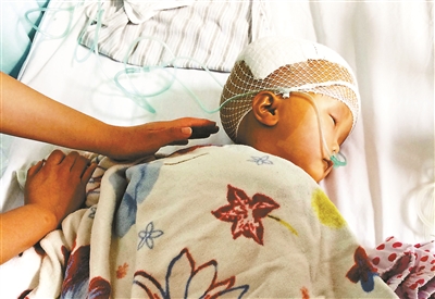 昨天,北京80后小伙袁荦早早来到航空总医院加护病房,探望刚刚做完排空“脑积水”手术的两岁大头娃娃“丫头”。“丫头”的大名叫熊友秀,来自大凉山彝族自治州木里县羊棚子村,从她的家出发整整奔波4天才能到达北京。