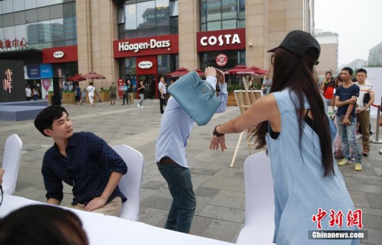8月23日,在北京崇文门街头举行的寺库奢侈品鉴宝会上,一女子的名包被鉴定为赝品,由于该款名包为其外籍男友从国外购买,该女子认为不可能为赝品,经再三向鉴定师确认后,女子生气用包“痛打”男友。