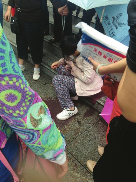 事发不久便被路人保护起来的产妇。