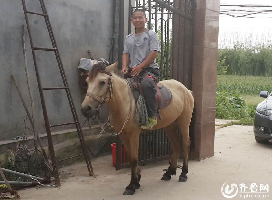 “爱上一匹野马,可我家里没有草原!”尽管没有草原,一样可以爱上野马。在济南华山镇卧西村,有位28岁小伙史林,他的家里没有草原,但他却爱上野马,每天骑马上下班,养马是他的业余爱好,骑马更成为他的主要出行方式。图为济南花山镇卧西村28岁小伙史林,痴迷骑马出行,每天都会上下班。养马是他的业余爱好,骑马更成为他的主要出行方式。 齐鲁网实习记者 白少光 摄 图片来源:齐鲁网