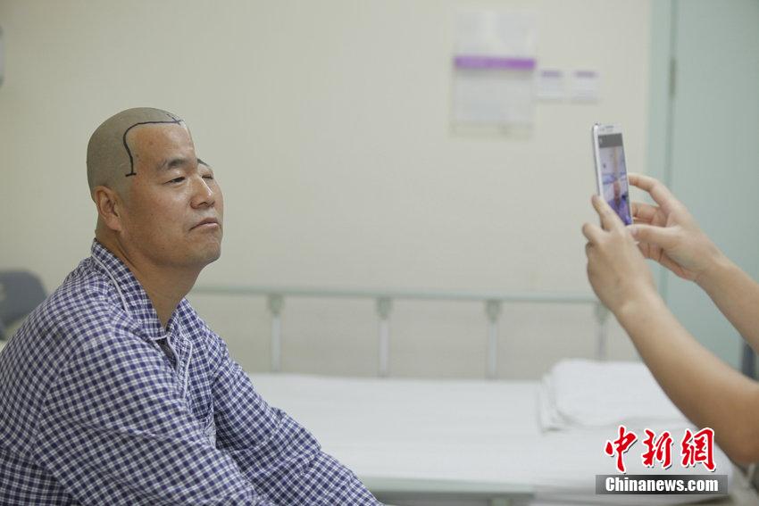 去年10月,家住周至县马召镇的胡师傅正在家中盖房子,不慎从三层楼房的高空坠落,砸在地上摆放的一堆木头上,当场昏迷不醒。随后他被送到当地医院进行手术,好在没有伤及要害处,手术时把他左侧破损的头盖骨都拿了出来,于是胡师傅的面容就变得很奇怪,左边头骨凹陷成一个深坑,严重缺损畸形。