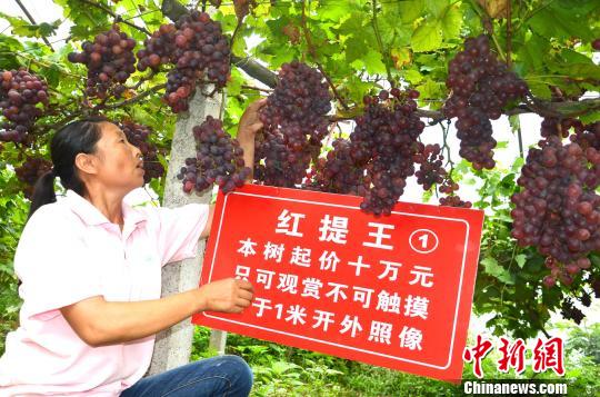 原标题:湖北宜昌现天价红提 一株红提树起价10万拍卖