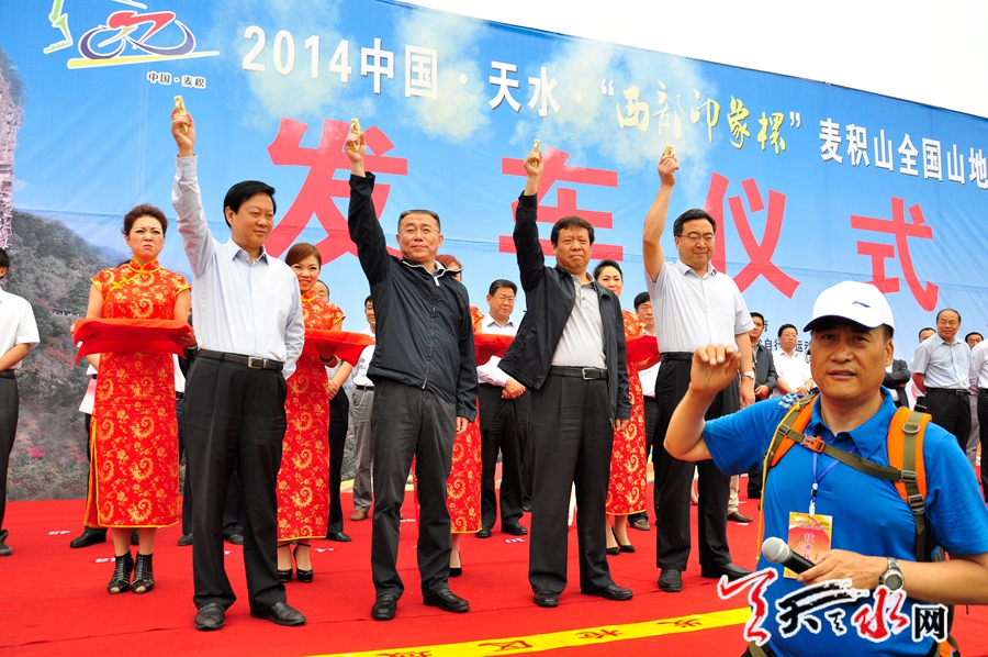 天天天水网(记者何永德) 秋高气爽,草木葱郁。9月1日,2014中国·天水·“西部印象杯”麦积山全国山地自行车邀请赛在世界文化遗产、国家5A级旅游景区麦积山风景名胜区鸣枪开赛,来自全国22个省、市、自治区的354名业余山地自行车运动员参加了比赛。