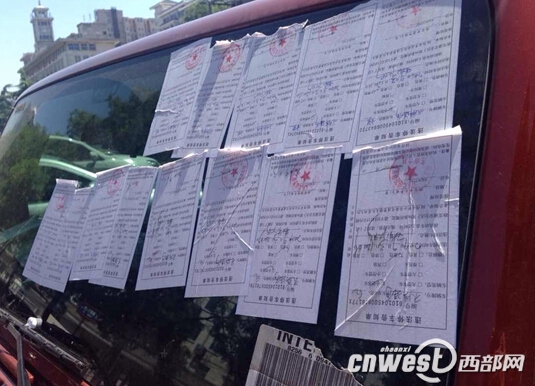 因被贴出多张罚单遭网友戏称为“最壮观”罚单。(图片来源于网络)