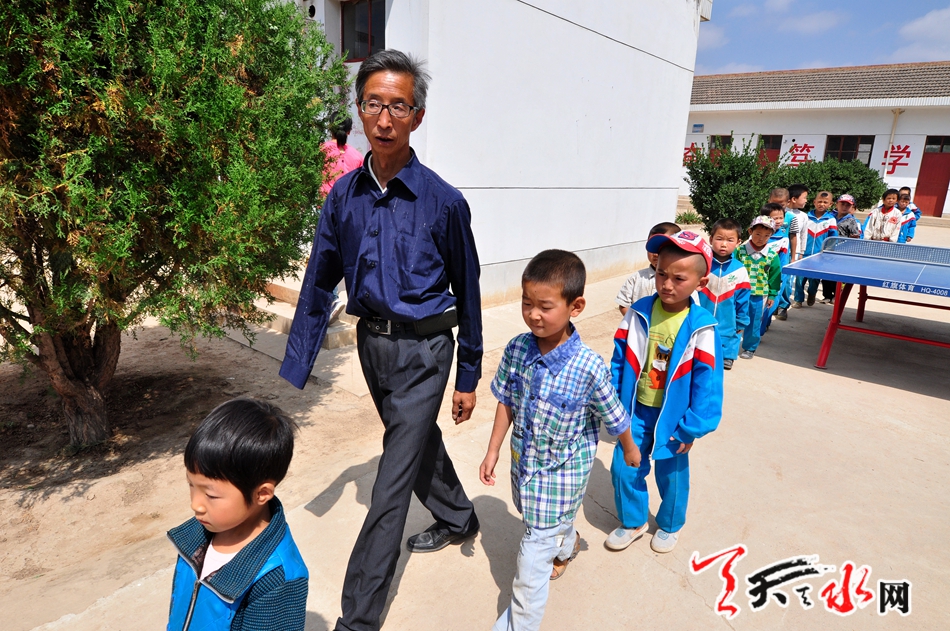 天天天水网 (记者何永德) 初秋的西北山区,在今年旱情的“关照”下,焦灼的黄地上渴望浇灌的苗木似乎显得比往年更为强烈。9月3日,甘谷县谢家湾张家沟小学校长张新世拖着瘦弱残疾的身体,同往常一样,第一个进入这所只有22名学生的乡村小学,开始了他重复了三十八年的传道、解惑、受业的一天,