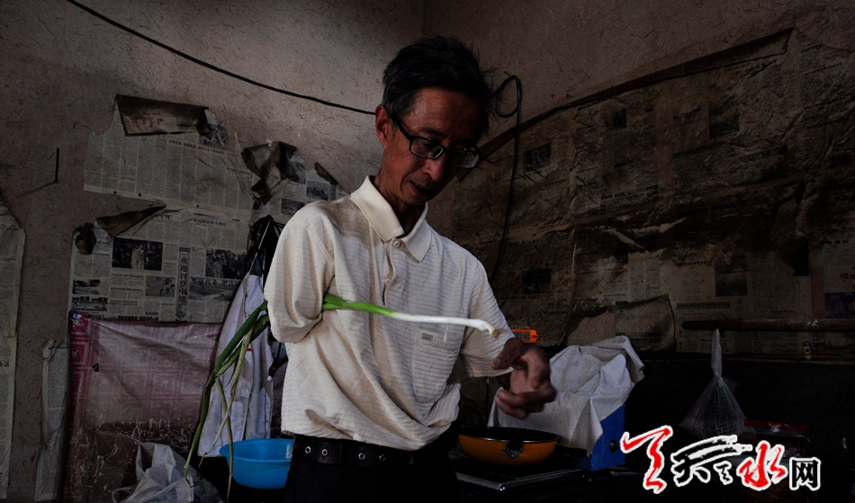 放学回家后,因老伴要给上学孙子做饭,瘦弱的他拖着不便的身体只能自己做饭,而这对于张新世来说,已成为生活中的一种常态。