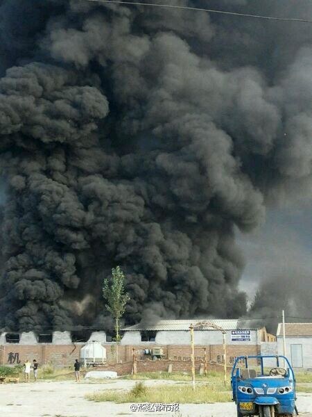 河北保定蠡县一泡沫厂发生大火浓烟滚滚