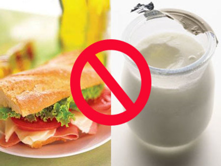 常常吃三明治搭配优酪乳当早餐的人要小心,三明治中的火腿、培根等和乳酸饮料(含有机酸)一起食用,容易致癌。因为,为了保存香肠、火腿、培根、腊肉等加工肉制品,食品制造商会添加硝酸盐来防止食物腐败及肉毒杆菌生长。当硝酸盐碰上有机酸(乳酸、柠檬酸、酒石酸、苹果酸等)时,会转变为一种致癌物质———亚硝胺。因此,不要常常食用这类加工肉品,以免增加致癌风险。