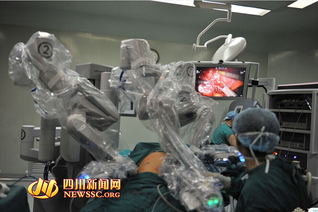 杨洪吉说,与传统外科手术相比,达芬奇机器人手术具有3个明显优势:一是突破了人眼的局限,可以进入人体内部的机器镜,使手术视野放大15倍,“平时肉眼难以观察的微小血管,在机器人的辅助下,可以做到细微观察下进行手术。”;二是突破了人手的局限,在原来手伸不进的区域,机器手可以在360度的空间下灵活穿行,且机械手上有稳定器,具有人手无法相比的稳定性及精确度;三是无需开腹,创口仅在1cm左右,创伤小,出血少,恢复快,大大缩短了术后住院时间,术后存活率和康复率都大大提高。