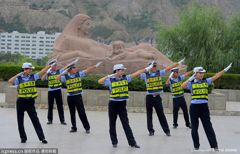 2014年9月10日,甘肃兰州,严肃执法的交警用动感歌舞宣传交规网友点赞“兰州交警萌萌哒,好可爱!”最近兰州的朋友圈里,大家纷纷转发着一个MV视频——兰州七里河交警大队版《小苹果》,这段视频从9月3日上传到现在,一周内点击量已经超过26万人次。七里河交警自编自导自舞自拍的交警版《小苹果》,以寓教于乐的方式普及道路交通规则,劝导人们“珍惜生命,安全出行”。
