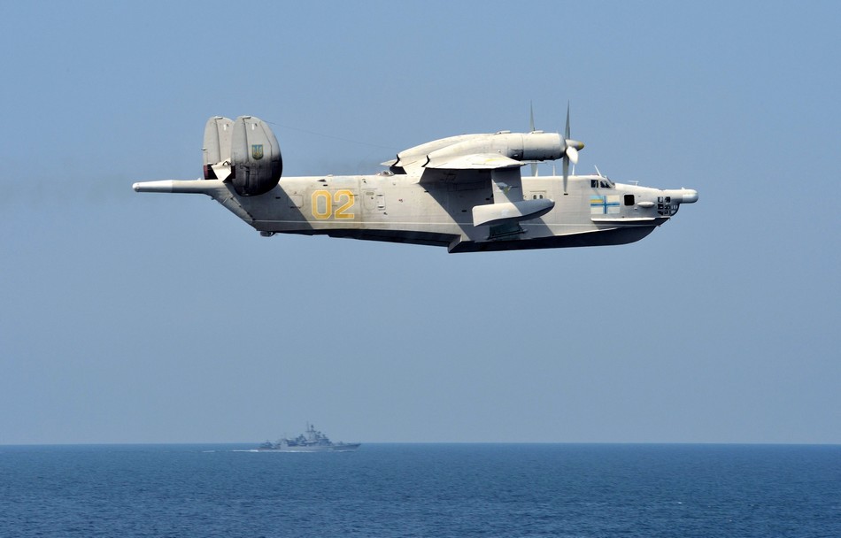 在当地时间9日的演习中,乌克兰海军航空兵的别-12水陆两栖飞机参加演习。