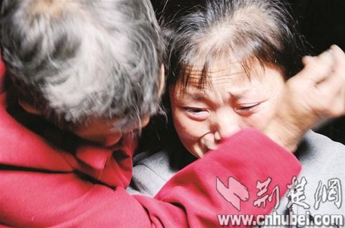 图为:母女相拥,泪湿衣襟