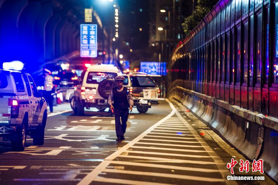 9月16日,广州警方临时封闭了内环路往南田路方向的出口。据广州警方16日晚间通报称,16日傍晚18时许,广州市海珠区南田路一座民居发生一起枪击事件,警方缉捕毒贩时遭对方开枪射击,民警立即开枪还击,随后嫌疑人退回屋内并点燃物品与民警对峙。期间造成1名民警受伤,1名群众因伤重不治身亡。当晚24时许,特警采取强攻措施破门入屋,嫌疑人黄某被警方当场击毙。 中新社发 龙宇阳 摄