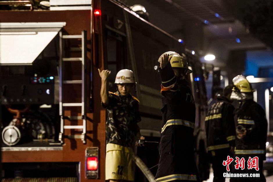 9月16日,广州警方与毒贩交火民居附近,大批消防在现场戒备。据广州警方16日晚间通报称,16日傍晚18时许,广州市海珠区南田路一座民居发生一起枪击事件,警方缉捕毒贩时遭对方开枪射击,民警立即开枪还击,随后嫌疑人退回屋内并点燃物品与民警对峙。期间造成1名民警受伤,1名群众因伤重不治身亡。当晚24时许,特警采取强攻措施破门入屋,嫌疑人黄某被警方当场击毙。 中新社发 龙宇阳 摄