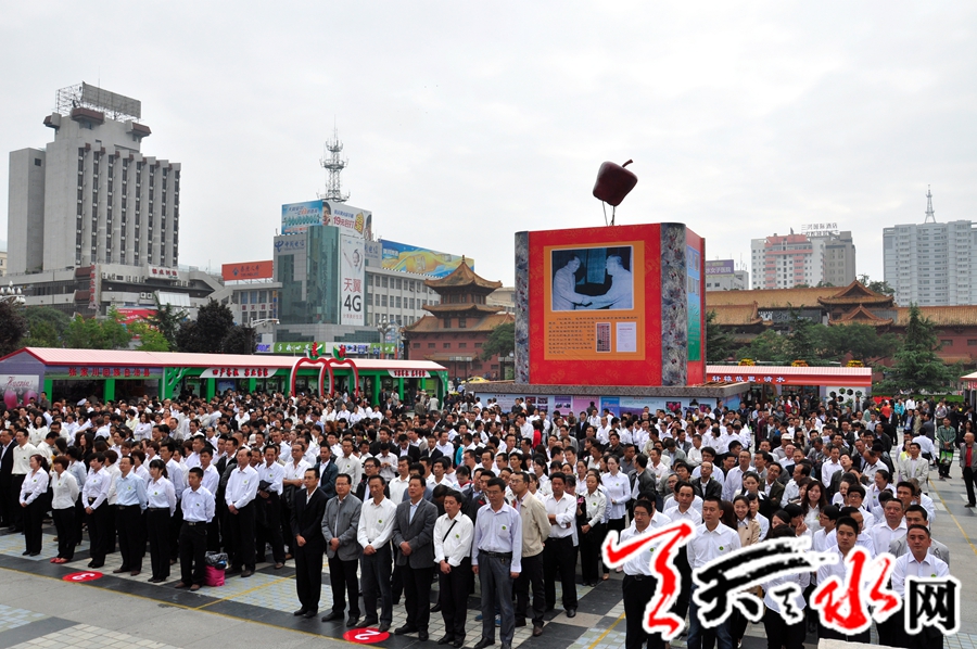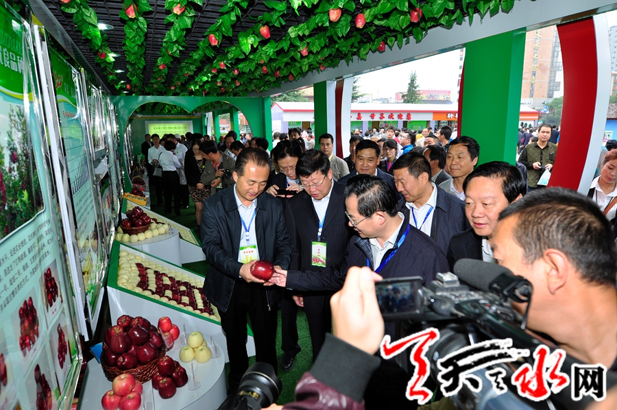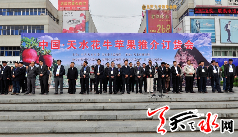 天天天水网讯(记者何永德) 四海客商聚龙城,五湖宾朋品“花牛”。九月的天水,瓜果飘香,9月20日上午,天水市龙城广场宾客云集,品种多样的“花牛”各显魅力。由天水市委、市政府主办,天水市林业局承办,各县区和市直有关部门协办的“中国·天水花牛苹果推介订货会”在这里隆重举行开幕仪式。