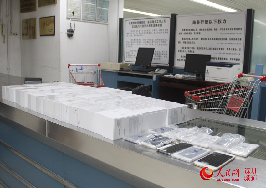 深圳罗湖海关查获的iPhone6手机。(王星 摄)