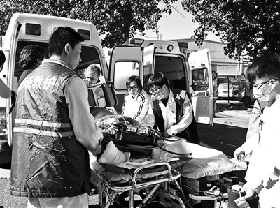 机场急救车和999急救车进行“交接” 摄影/本报记者 刘珜