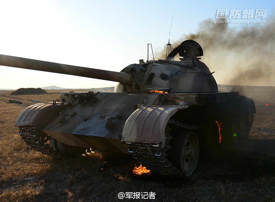据解放军报法人微博“军报记者”报道,10月底,沈阳军区“联合行动—2014E”实兵演习在科尔沁草原上演了一场精彩纷呈的大戏。我军首次全部采用实物靶标进行火力打击演练,退役坦克、装甲车等600多个实物靶标成“活靶子”!(图片来源:军报记者微博)