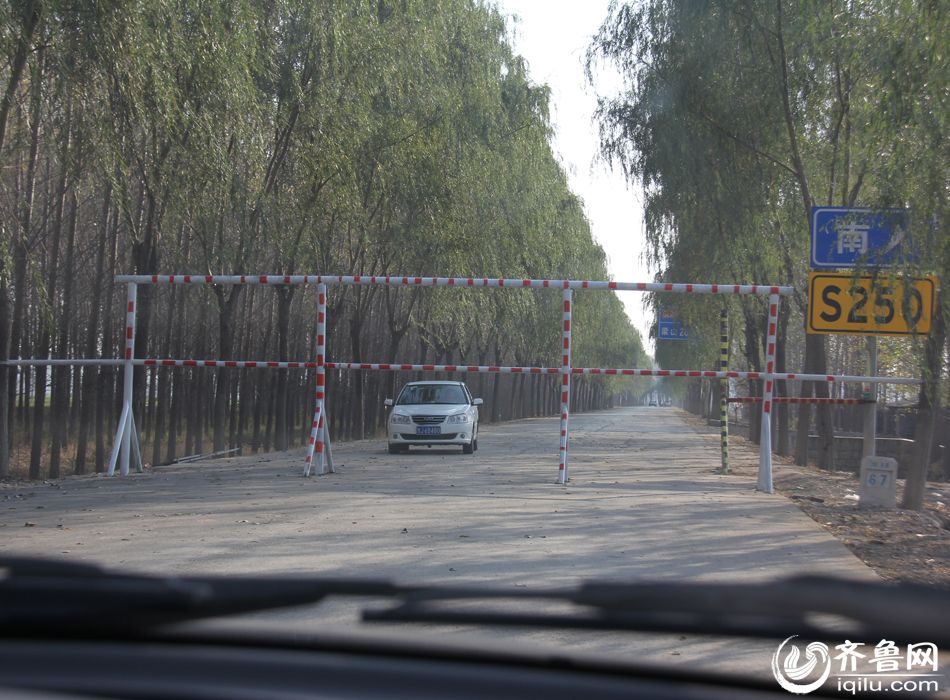 11月4日下午,齐鲁网记者驱车从济宁梁山沿省道S250向东平方向行驶。由于前方省道S331正在施工维修,在省道S250与S255交汇处,施工方设立了高1.5米的“限高杆”。