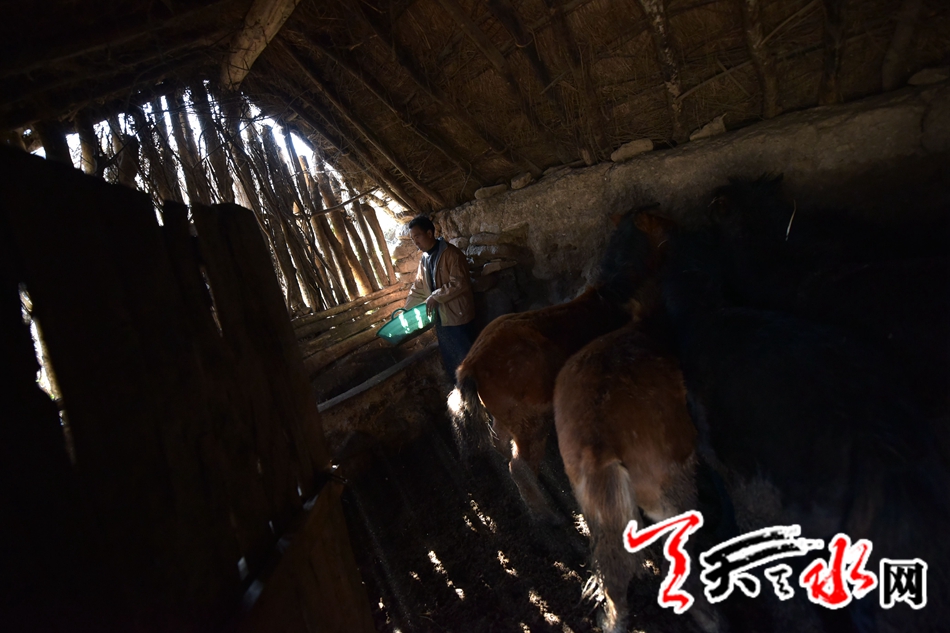 11月5日,魏双全在马棚里给小马驹添加饮料,这些还处在断奶期的小马驹,要经过两个多月的断奶期后,就被放到草原上,开始独立的生长,否则,母马的喂养,会让母马体态消瘦,毛色乏光,使马价下降。