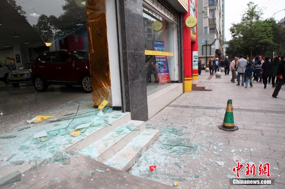 10月29日下午,重庆市永川区玉屏北路水韵书香居民小区南门,一辆新车从小区旁售车大厅急驶而出,车头朝左奔入人行道急驶10余米,撞上安放在人行道上的石墩,并顶着直径30多公分的石墩朝左向小区前行,又撞坏小区车行进口道边的刷卡器后奔进小区3米左右停下。新车从售车大厅驶出直至小区里面停下,足足有30多米远。据售车人员和小区保安介绍:当时,该名女司机驾驶刚买的新车从售车大厅出来,副驾驶坐着她的弟弟,售车人员则在车头前指引。不知何故,女驾驶员就开着车撞烂大厅玻璃门冲向人行道、冲进小区。幸好事发时没有人经过,不然后果不堪设想。 中新社发 陈仕川 摄