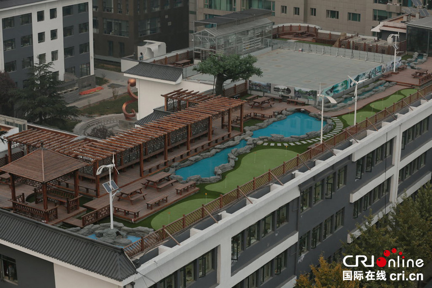 原标题:北京八一中学屋顶建环保花园 小桥流水亭台楼阁一应俱全