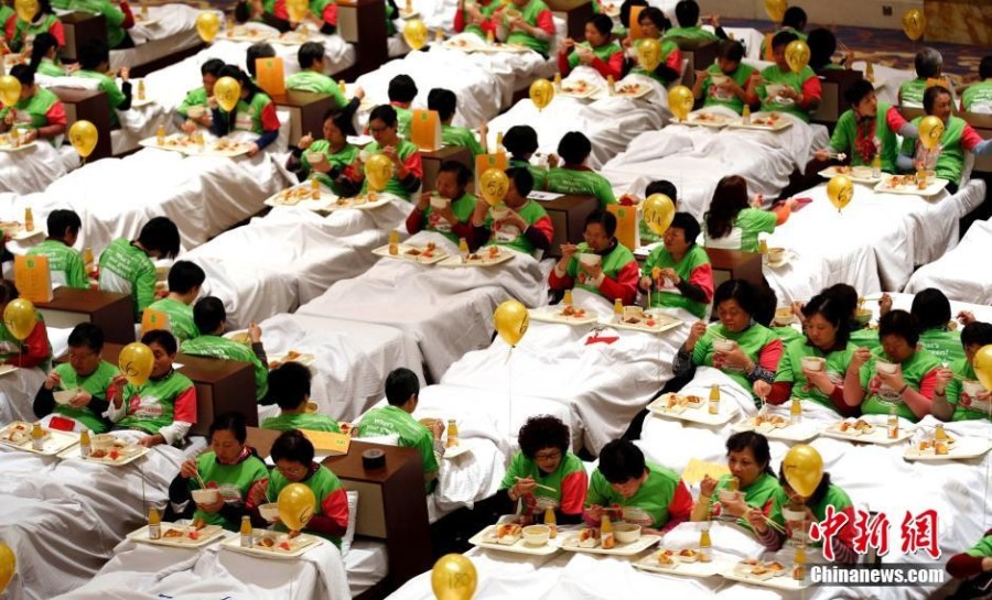 11月12日,上海浦东,共有388人次同时参与一酒店举行的“最多人在床上用早餐”活动,并创造了新的吉尼斯世界纪录。此前,该项目的世界纪录是由妇女健康协会的288位成员于2012年3月12日在澳大利亚成功创下。来源:中新社