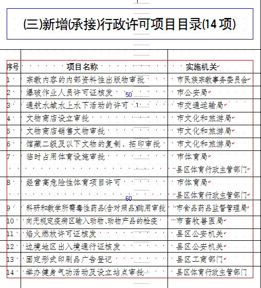 根据《甘肃省人民政府关于公布省级政府部门第十四批中央在甘单位第八批取消调整和下放行政审批项目等事项的决定》(甘政发〔2014〕91号)和《甘肃省行政审批制度改革工作领导小组办公室关于清理非行政许可审批事项的通知》(甘审改办发〔2014〕4号)文件要求,经市政府研究,决定公布市级政府部门第十批取消调整和下放行政审批项目共35项,其中,取消行政许可项目2项,取消非行政许可项目8项;新增(承接)行政许可项目14项,新增(承接)部分内容的行政许可项目1项;3项非行政许可项目合并为1项;市县政府部门工商登记前置审批改为后置审批事项9项。另外,驻市单位取消行政审批项目5项。现予以公告。